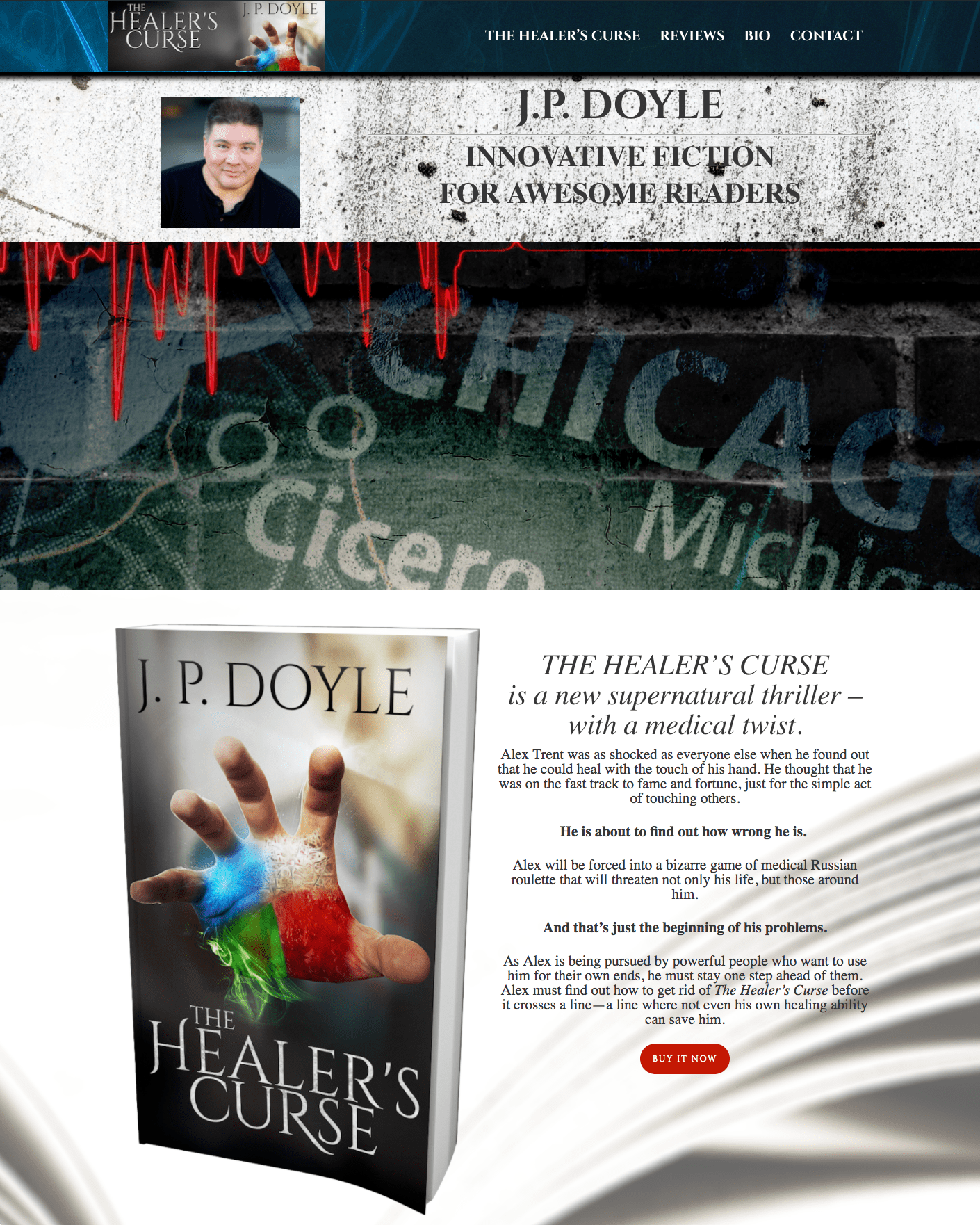 Website for a local author, that features his storyline with parallax imagery designed into the website. Scroll through his site and check out his book, The Healer’s Curse!